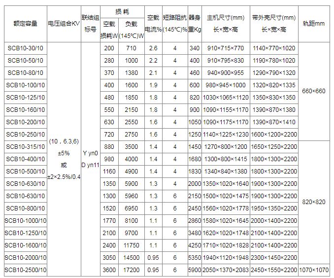 SCB10環(huán)氧樹脂干式系列(10KV級)技能數(shù)據(jù)技能數(shù)據(jù)