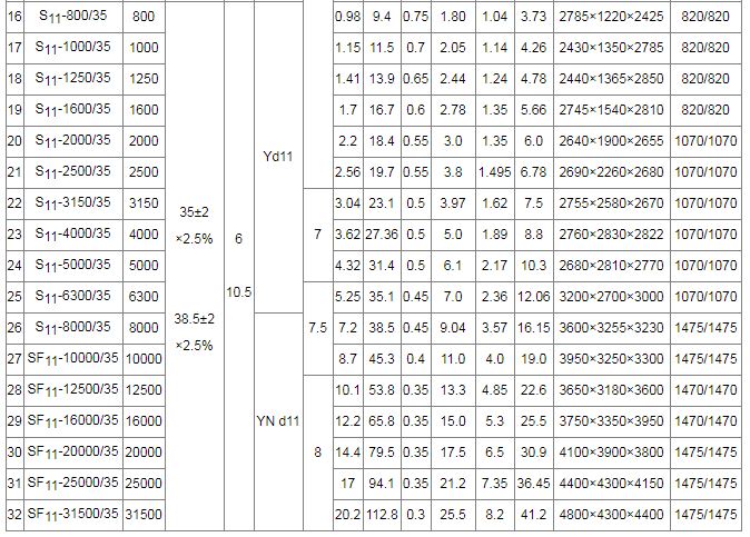SF11、S11無勵磁調(diào)壓系列(35KV級)技術(shù)數(shù)據(jù)
