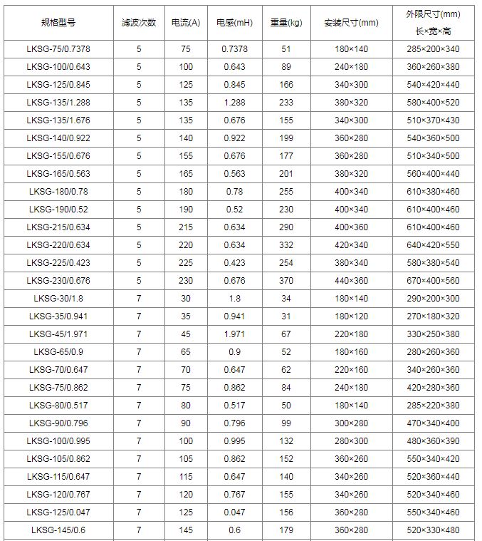 濾波電抗器型號(hào)含義