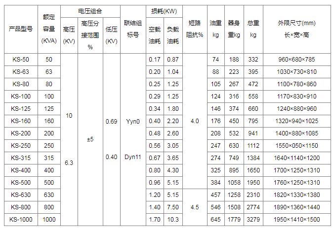3.礦用變壓器技能數(shù)據(jù)(一般型)